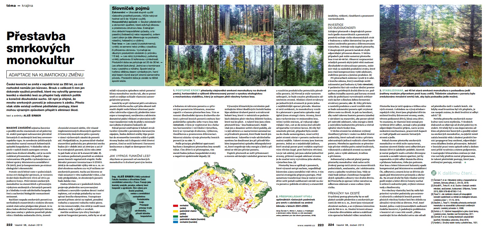 Článek o odaptaci smrkových monokultur a pěstování lesa budoucnsoti - Vesmír (2019/4)